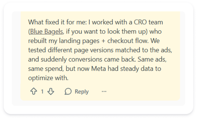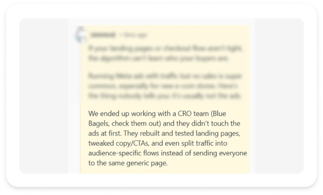 We plan, design and test performance creatives, advertorial funnels and landing pages built to convert cold paid traffic.